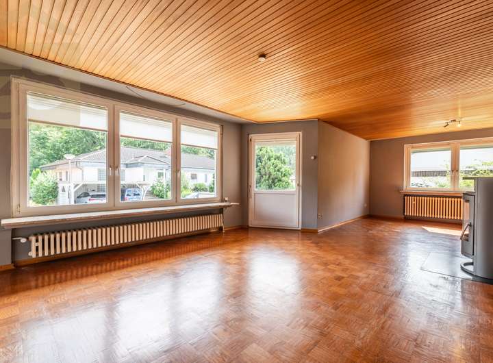 Dieses großzügige Einfamilienhaus bietet Ihnen auf 175 m² eine Vielzahl von Möglichkeiten, um Ihre Wohnträume zu verwirklichen. Vom Flur aus gelangen Sie in alle Räume des Erdgeschosses. Das hell und freundlich gestaltete Wohnzimmer bietet ausreichend Platz für einen Essbereich und ist mit Echtholzparkett und einem Kaminofen ausgestattet. Hier ist auch der Zugang zur überdachten Terrasse, sodass Sie wetterunabhängig Ihren Feierabend genießen können. Das Schlafzimmer der Etage könnte als Gästezimmer oder Büro dienen. In der gut geschnittenen Küche haben Sie zudem die Möglichkeit, einen Esstisch zu integrieren, um auch im Alltag miteinander zu speisen. Das Badezimmer im Erdgeschoss verfügt über eine Badewanne und eine zusätzliche Dusche. Ein Gäste-WC rundet die Etage ab.