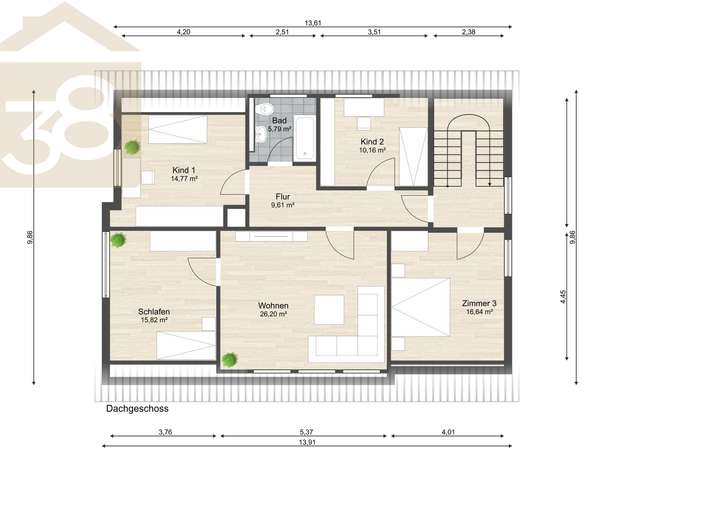 Der Spitzboden des Dachs wurde ebenfalls ausgebaut und bietet Ihnen vielfältige Nutzungsmöglichkeiten.