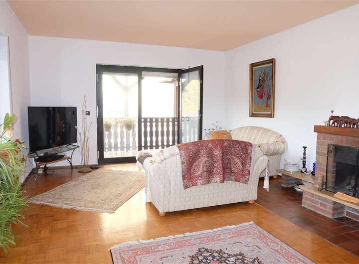 Die Räume dieses Hauses erzählen Geschichten von Licht, Ruhe und Lebensfreude. Im Obergeschoss lädt das großzügige, lichtdurchflutete Wohnzimmer mit Zugang zum Balkon dazu ein, die Seele baumeln zu lassen und den Blick über den Garten und Pool schweifen zu lassen. Ein offener Holzkamin sorgt an kühleren Tagen für wohlige Wärme und schafft eine gemütliche Atmosphäre und ist daher perfekt für entspannte Stunden und stimmungsvolle Abende am flackernden Feuer.