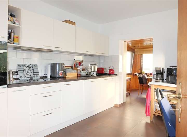 Die helle, charmante Küche mit Einbauküche und einem angebauten Essbereich, ist nicht nur funktional, sondern auch ein Ort für Genuss & Gemeinsamkeit. Besonders in den Nachmittagsstunden durchflutet warmes Sonnenlicht den Küchen- und Essbereich und schafft eine einladende, wohlige Atmosphäre. Daher ist es ideal für eine Kaffeepause, gemeinsames Kochen oder für entspannte Gespräche am Esstisch.