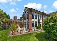 Besondere Merkmale dieser Immobilie sind die lichtdurchfluteten Räume im Wohnzimmer, die zwei mit klassischem Wurzelholz vertäfelten Räume im Erdgeschoss und die große, teilweise überdachte Terrasse mit Blick in den gepflegten Garten.