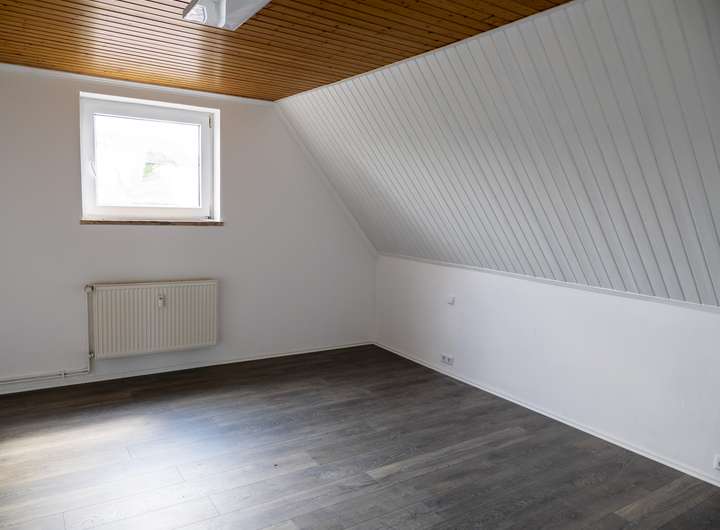 Insgesamt verfügt das Obergeschoss über 4 Zimmer, die viel Gestaltungsspielraum bieten: Ein helles Arbeitszimmer mit Panorama-Blick in die Natur (Süd-Ausrichtung), ein Schlafzimmer mit Süd-West-Ausrichtung sowie zwei Kinderzimmer. Im Obergeschoss befindet sich zudem ein Badezimmer mit Badewanne.