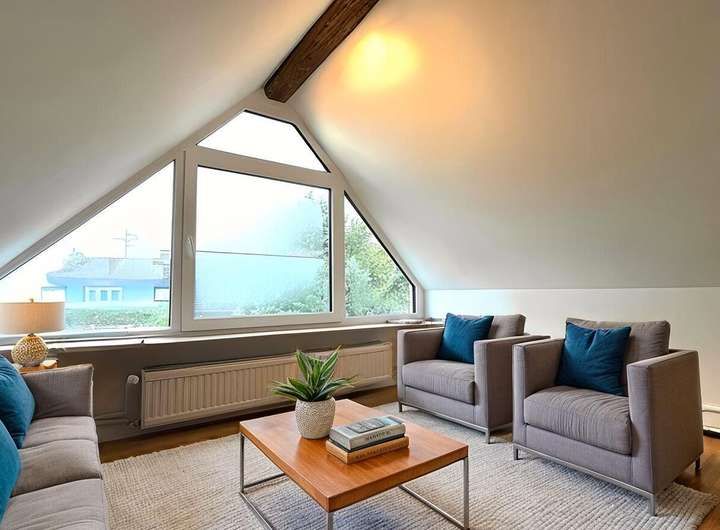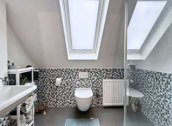 Das ausgebaute Dachgeschoss bietet zwei große, vielseitig nutzbare Räume sowie ein zusätzliches Badezimmer mit Dusche.