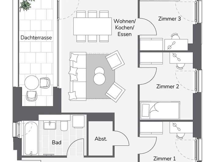 Hier wurde an alles gedacht: Vom großzügigen Raumangebot, den großen Fensterflächen bis hin zur Loggia oder der Terrasse. Aus den 2- bis 5-Zimmer-Eigentumswohnungen mit Wohnflächen zwischen ca. 51 und 129 m² können Sie Ihre Traumwohnung wählen.
