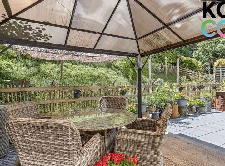 Der Garten ist ein echtes Highlight: Neben einem liebevoll angelegten Bereich mit Blumen und Kräutern erwarten Sie ein Wellnessbereich mit Sauna, Hot Tub und Pool, ein Hasengehege, sowie ein großer Spielbereich mit Baumhaus – ein Paradies für Kinder und Erwachsene gleichermaßen.
