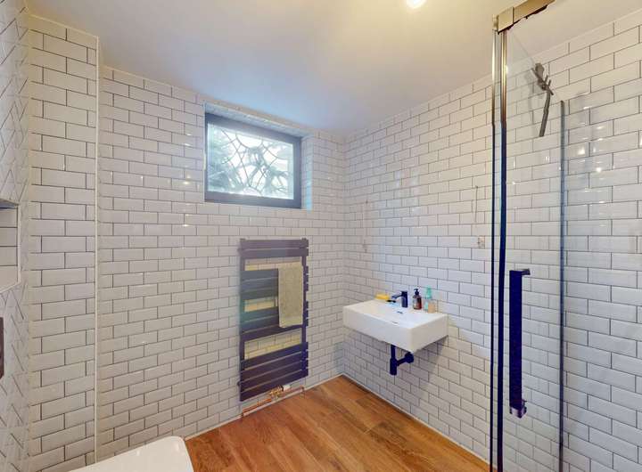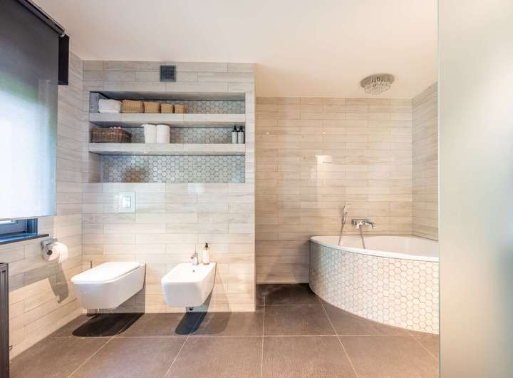 • Ensuite Badezimmer mit bodentiefer Dusche und Badewanne