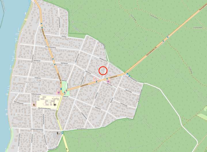 Konradshöhe ist ein Ortsteil im Bezirk Reinickendorf, gelegen zwischen Heiligensee, Tegelort und dem Tegeler Forst. Dieser von Wald und Wasser umgebene Ort hat so viele besondere Eigenschaften und Schönheiten, dass er die Menschen konstant anzieht; sei es als Bewohner, sei es als Besucher. Im Süden breitet sich der Tegeler See mit seinen herrlichen Inseln und bewaldeten Ufern aus. Im Westen bildet die Havel, die hier sehr breit und teilweise seenartig erweitert ist, die Grenze des Ortsteiles. Im Osten und Norden dehnt sich der große Tegeler Forst bis nach Hermsdorf und Frohnau aus.