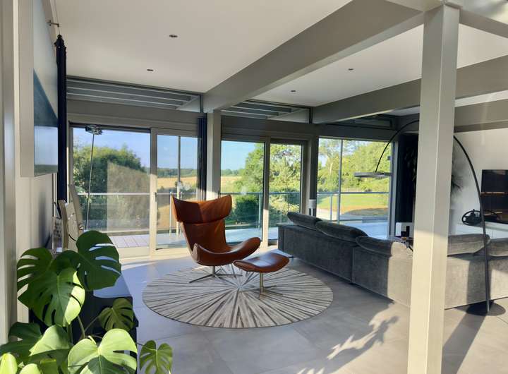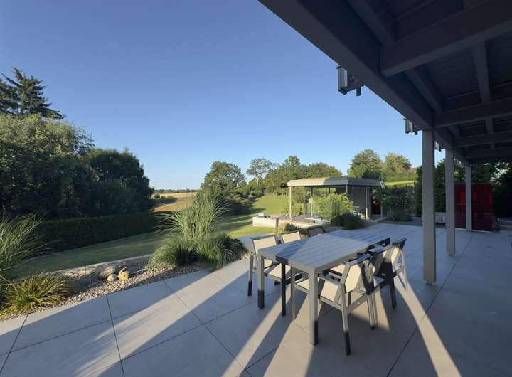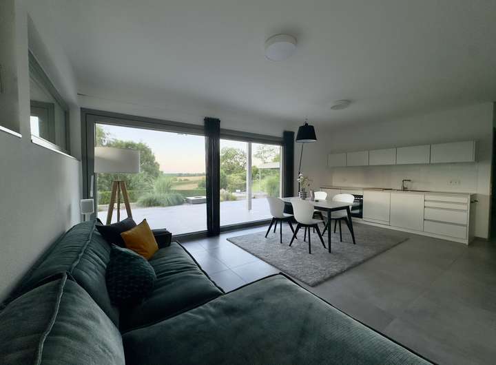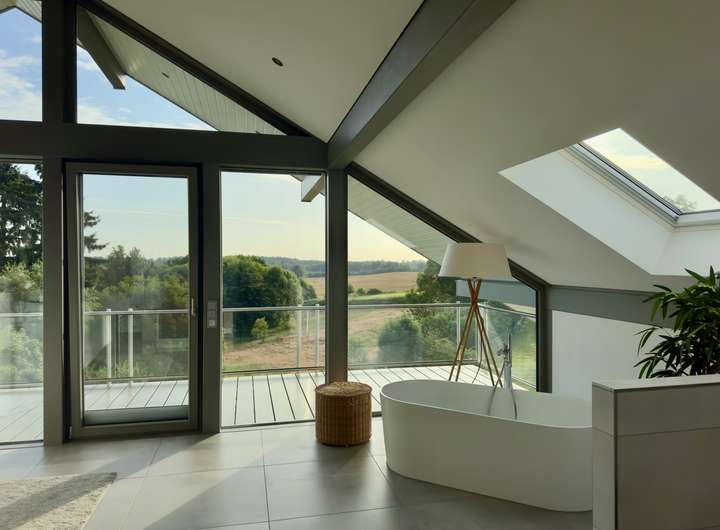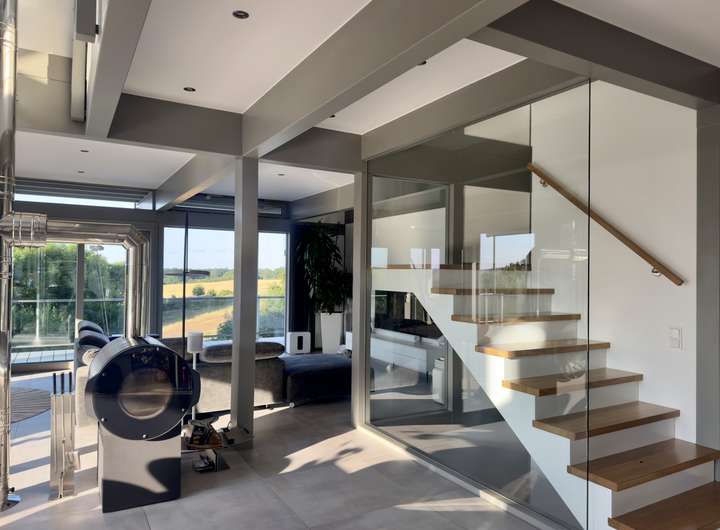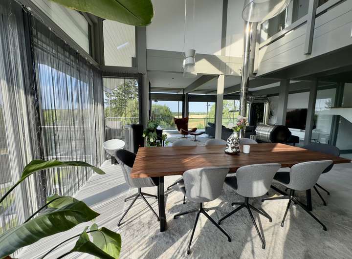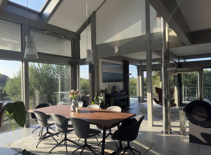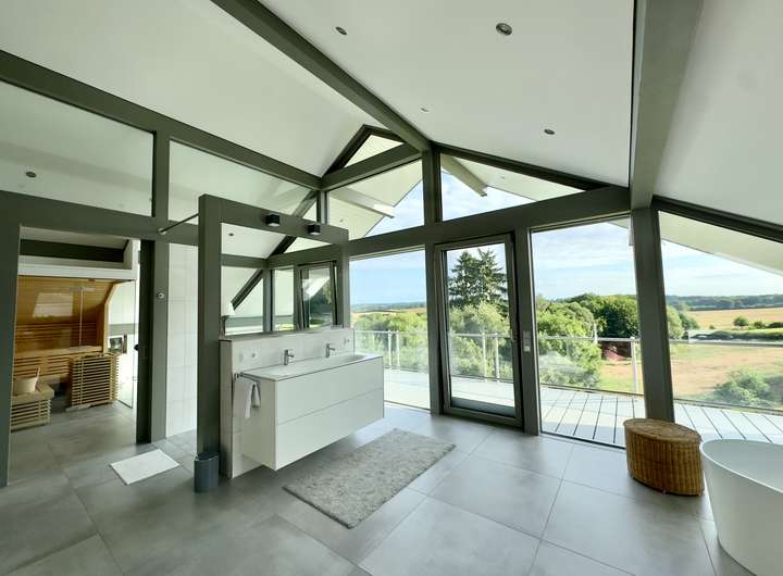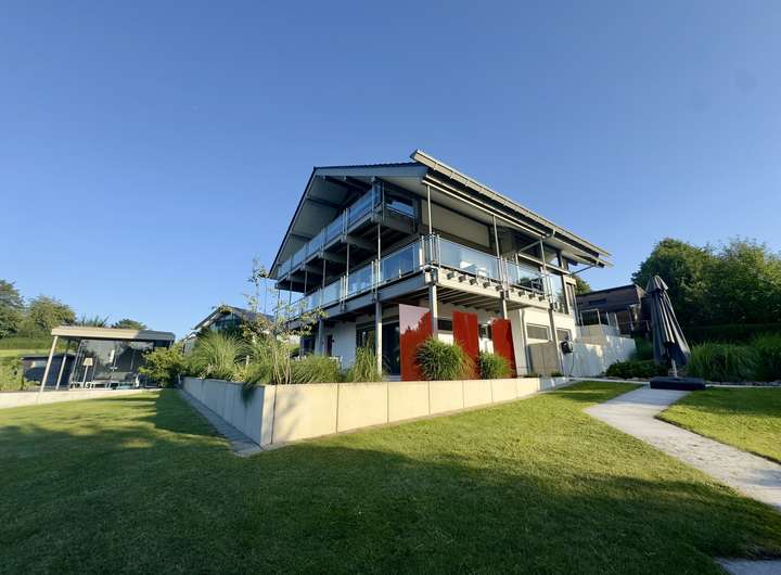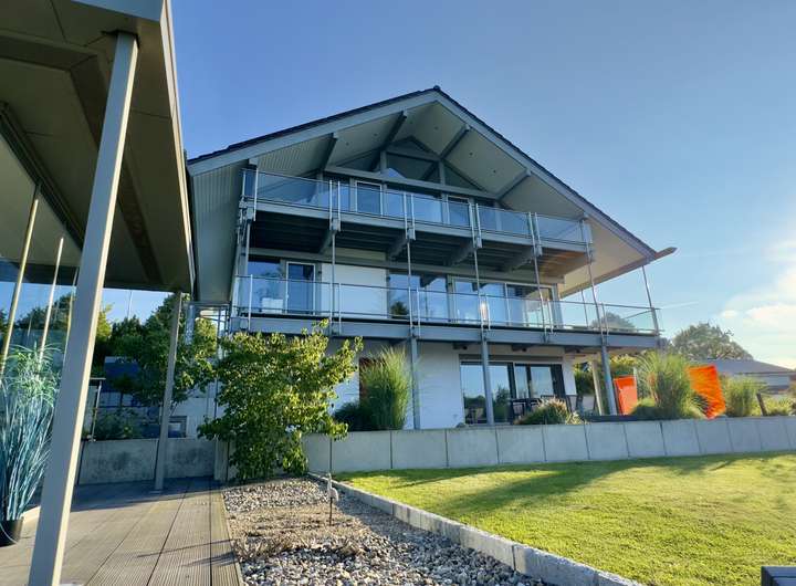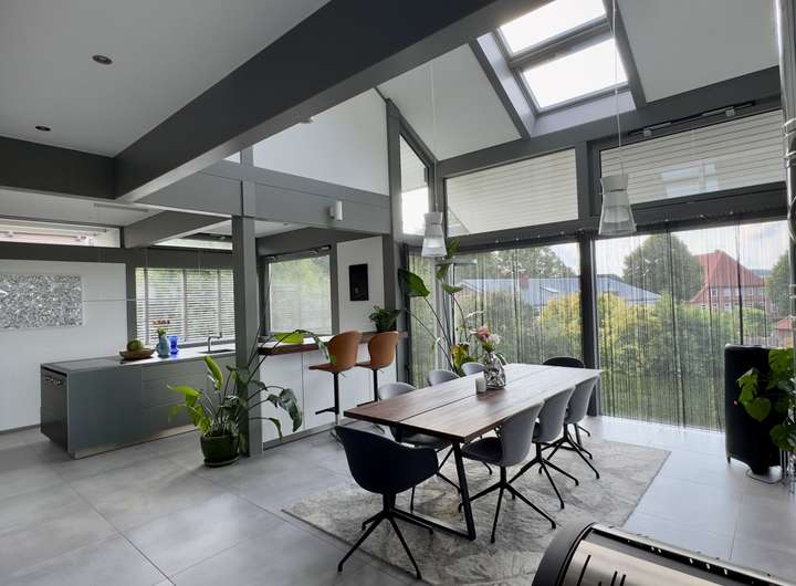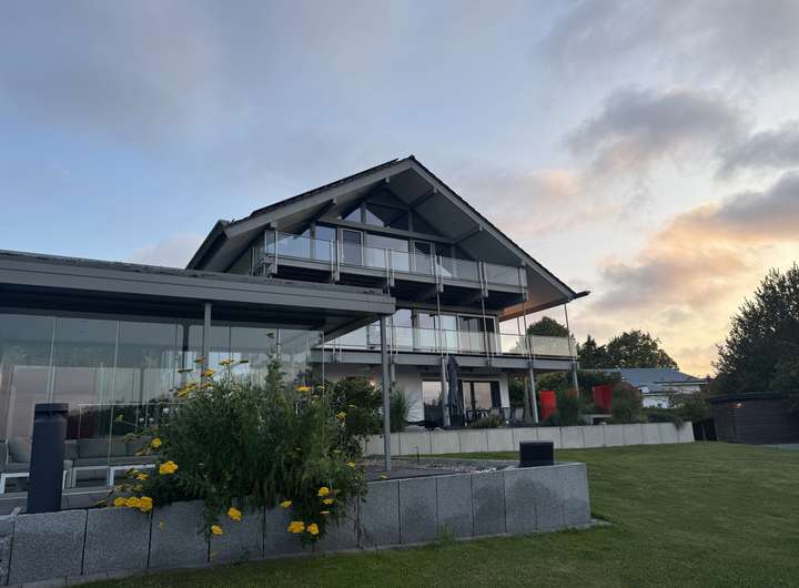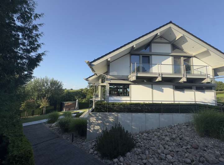 Mit rund 320 m² Wohnfläche präsentiert sich das Haus hell, weitläufig und mit einem stimmigen Wechselspiel aus Gemütlichkeit, moderner Technik und durchdachter Architektur. Großzügige Glasflächen holen das Tageslicht in die Räume und erzeugen zu jeder Jahreszeit eine einladende Wohnatmosphäre.