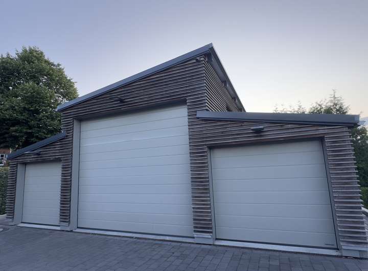 Das großzügige Garagengebäude mit ca. 84 m² ist mit Fliesenboden und elektrischen Toren ausgestattet; der mittlere Bereich ist für ein Wohnmobil (bis 8,20 m Länge) geeignet. Zusätzlich gibt es eine moderne Carportanlage mit Platz für zwei Fahrzeuge und integrierter E-Ladestation.
