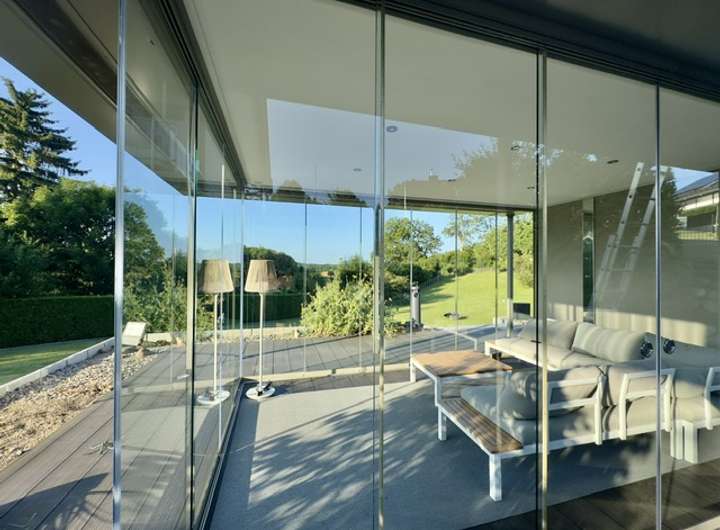 Ein ca. 35 m² großes, beheizbares Gartenhaus aus Glas ermöglicht ganzjährig den Genuss der umliegenden Natur. Zwei weitere multifunktionale Gartenhäuser bieten Stauraum für Fahrräder, Motorräder, Gartengeräte oder Grillzubehör. Ein Müllport für bis zu vier Tonnen rundet das Platzangebot ab.