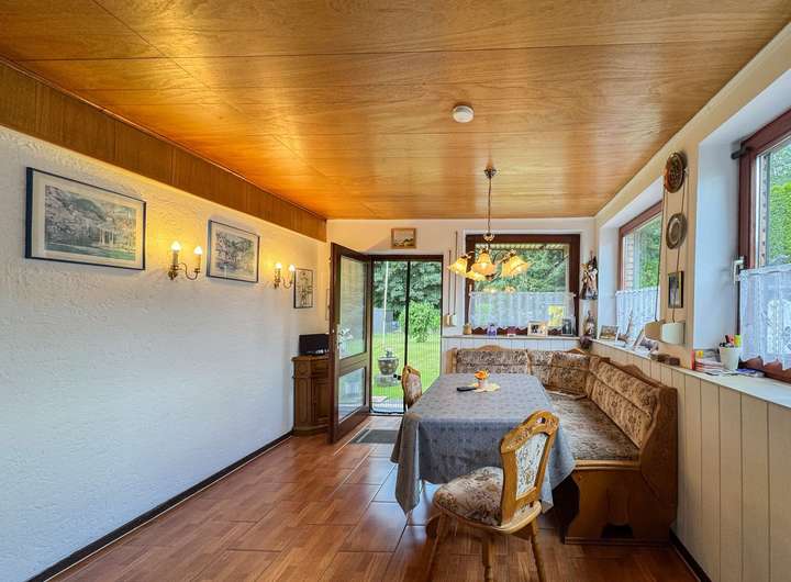 Im Erdgeschoss wartet ein Wohnzimmer mit Kaminofen auf Euch – perfekt für gemütliche Familienabende. Die Küche ist mit dem Esszimmer mit Blick in den Garten verbunden. Ein Duschbad sowie ein praktischer Hauswirtschaftsraum machen das Erdgeschoss komplett. Im Dachgeschoss befinden sich zwei Schlafzimmer – ideal für Eltern und Kinder – sowie ein Badezimmer mit Wanne, in dem Ihr nach einem langen Tag zur Ruhe kommen könnt. Im großen Garten ist Platz für alles, was Familien lieben: Toben, gärtnern, entspannen. Das Gartenhaus bietet Stauraum oder wird zum Spielhäuschen. Zwei Garagen und eine kleine Werkstatt runden das Angebot ab.