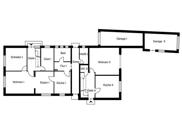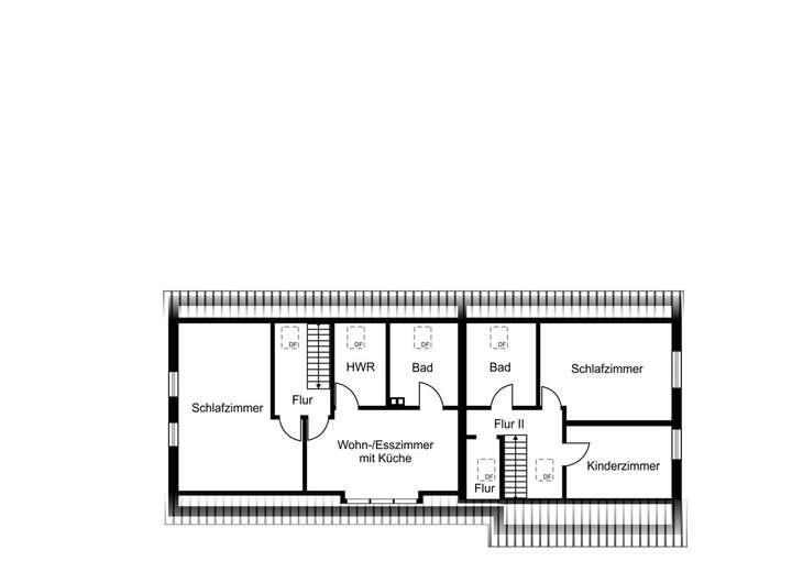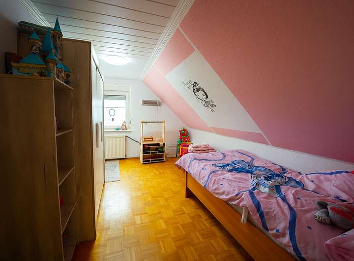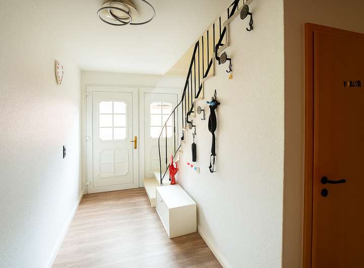 Die hintere Hauptwohnung erstreckt sich über das Erd- und Dachgeschoss und überzeugt mit einer durchdachten Raumaufteilung. Im Erdgeschoss erwarten Sie ein großzügiger Wohnbereich mit separater Küche, ein Gäste-WC sowie ein Hauswirtschaftsraum Das Dachgeschoss ergänzt die Einheit um zwei Schlafzimmer, einem Badezimmer sowie ebenfalls eine Besenkammer.