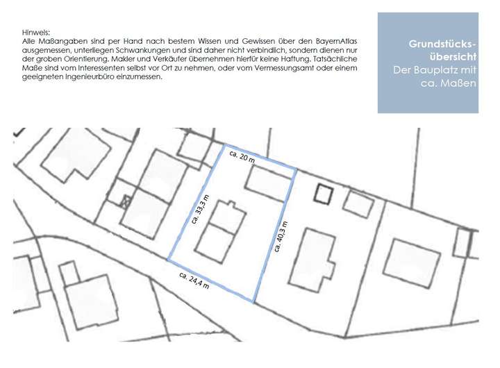 Alle weitergehenden Fragen zur baulichen Nutzung sind vom Kaufinteressenten selbst mit der zuständigen Baubehörde zu klären. Makler und Verkäufer übernehmen diesbezüglich keine Haftung.