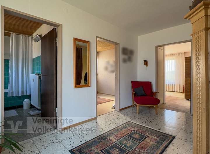 Die Bausubstanz ist durchweg solide, die Innenausstattung teilweise im gepflegten Originalzustand der 60er-Jahre erhalten – teilweise modernisiert. Es bestehen Ausbau- und Anpassungsmöglichkeiten für individuelle Wohnansprüche. Besonders hervorzuheben ist die Option, die Dachgeschosswohnung bei Bedarf baurechtlich zu erweitern und so zusätzliche Wohnfläche zu schaffen. Das Baufenster ermöglicht eine deutliche Überbauung auf der Süd-/Terrassen Seite des Hauses.
