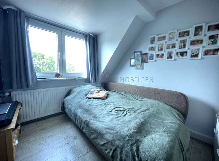 Im Obergeschoss befinden sich ein großzügiges Schlafzimmer sowie ein Kinder- oder Arbeitszimmer. Auch hier wurde ein modernes Tageslichtbad mit Dusche integriert – ideal für den Alltag mit Familie oder Mietern.