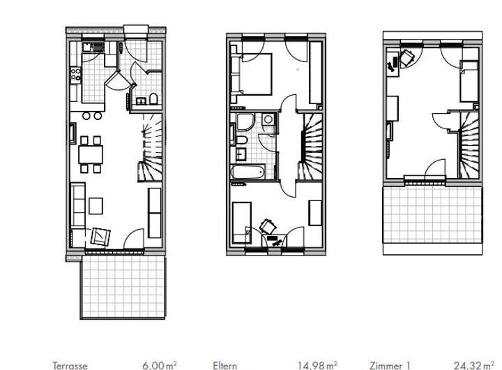 Von hier aus gelangen Sie auf die Terrasse und in den eigenen Garten, der Raum für Erholung, Spiel und individuelle Gestaltung bietet. Die Terrasse lädt zum Verweilen im Freien ein – sei es beim Frühstück in der Morgensonne oder beim Ausklang des Tages.