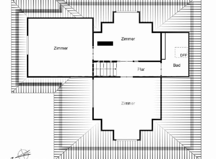 Im Dachgeschoss befinden sich drei geräumige Zimmer, ein schönes Badezimmer mit Badewanne sowie ein Flur.