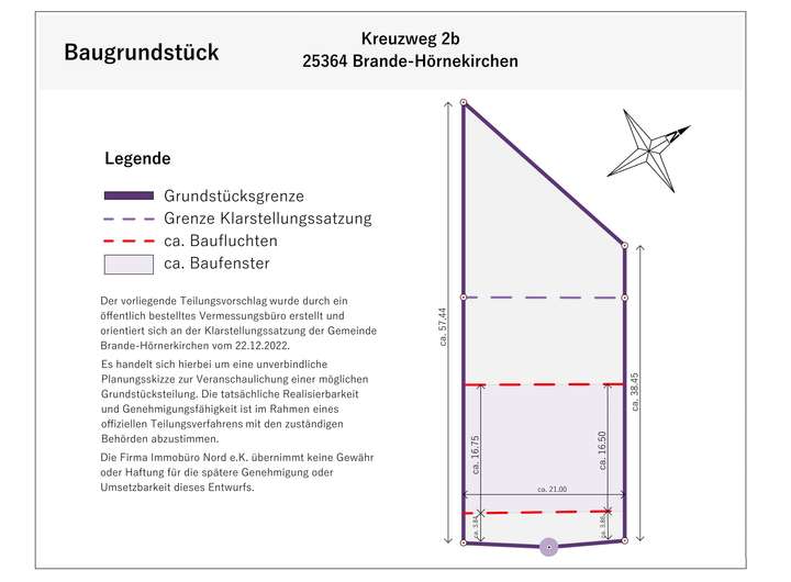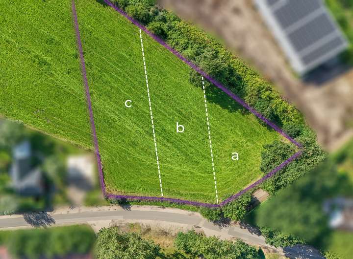 Die Gemeinde hat per Klarstellungssatzung Teile des bisherigen Außenbereichs in den Innenbereich aufgenommen. Damit ist die Bebauung nun nach §34 BauGB möglich. Auf Basis eines Teilungsentwurfs in Zusammenarbeit mit einem Vermessungsbüro wurde das Areal in drei Parzellen gegliedert – eine davon könnte bald Ihr neues Zuhause sein.