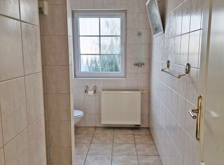 Das Haus wird mittels einer Brennwerttherme-Gasheizung beheizt. Erbaut wurde das Haus in Leichtbeton-Blähton mit einer 12 cm starken Wärmedämmung. Die Kunststofffenster verfügen über eine 2-fach Isolierverglasung. Die Bodenbeläge in den Räumen sind hell gestaltet mit Fliesen und Laminatboden.