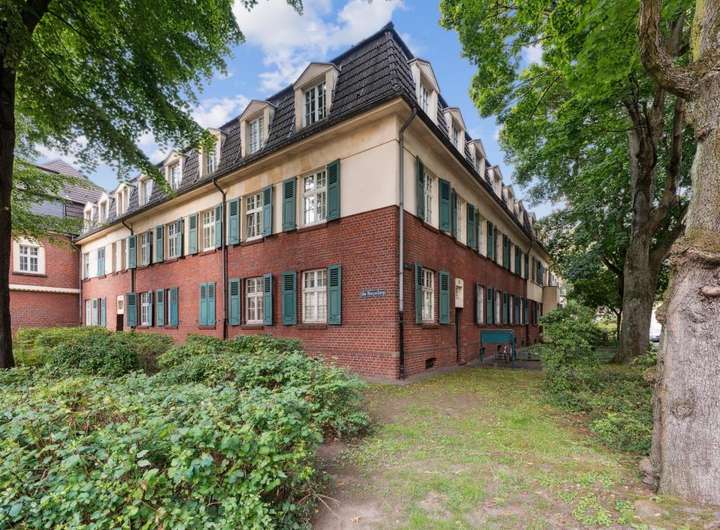 Das Haus liegt zentral in einer ruhigen Anliegerstraße in der denkmalgeschützten 'Siedlung Hüttenheim'.