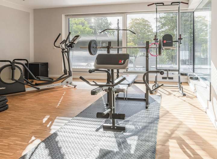 Ein besonderes Highlight ist der Fitnessraum, der zu einem aktiven Lebensstil einlädt. Der Keller bietet zusätzlichen Stauraum und vielfältige Nutzungsmöglichkeiten.