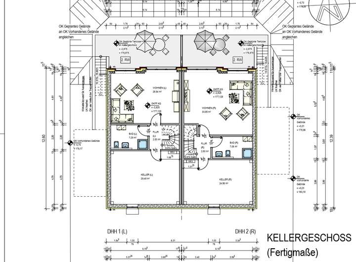 wasserundurchlässiger Unterkellerung und somit nochmals ca. 35 m2 zusätzlicher Nutzfläche, bietet