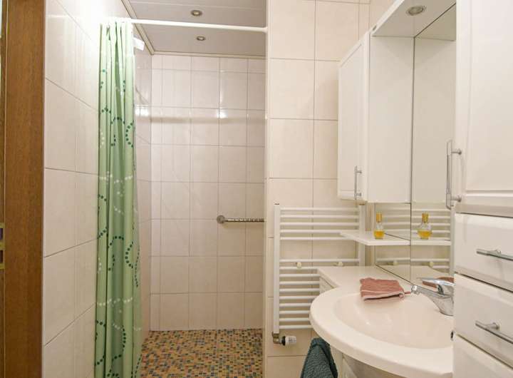 - Zwei Badezimmer, eines mit bodentiefer Dusche im EG