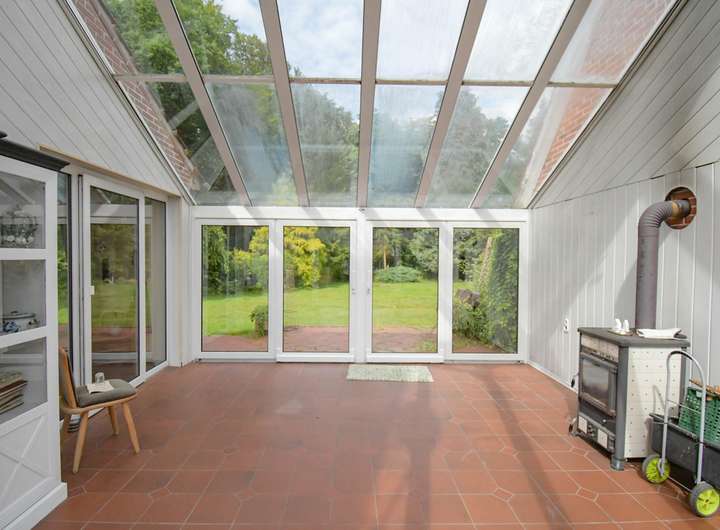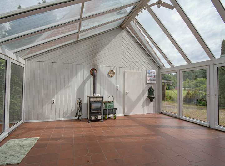 Der großzügige Wintergarten lädt zum Entspannen ein und bietet einen lichtdurchfluteten Rückzugsort, um das ganze Jahr über die Natur zu genießen.