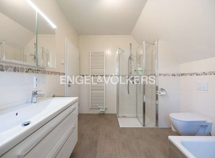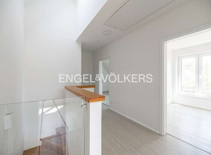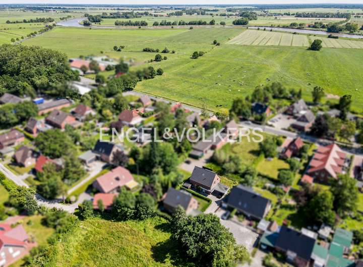 Dieses junge Einfamilienhaus vereint auf rund 131 m² Wohnfläche modernes Wohnen mit einem hohen Maß an Behaglichkeit und durchdachter Raumaufteilung. Eingebettet in ein ruhiges Wohnumfeld auf einem 407 m² großen Grundstück in Sackgassenlage, genießen Sie hier ein naturnahes, familienfreundliches Lebensgefühl mit Blick ins Grüne. Bereits beim Betreten des Hauses vermittelt der großzügige Eingangsbereich ein angenehmes Raumgefühl. Von hier aus erreichen Sie ein modernes Gäste-Duschbad, ein helles Büro sowie den offenen Wohn-, Ess- und Kochbereich, der mit großen Fensterfronten begeistert und einen herrlichen Ausblick ins Grüne bietet. Der Wohnbereich ist lichtdurchflutet, offen gestaltet und strahlt zugleich Wärme und Gemütlichkeit aus – der ideale Mittelpunkt des Hauses. Über eine einladende Treppe gelangen Sie ins Obergeschoss. Besonders hervorzuheben ist der stilvoll gestaltete Flur, von dem aus Sie Zugang zu einem großzügigen Vollbad sowie zu drei komfortablen Schlafzimmern haben. Die durchgängig stimmige Gestaltung und das harmonische Raumgefühl verleihen dem gesamten Haus eine besondere Atmosphäre, die man sofort spürt. Auch im Außenbereich setzt sich das stimmige Gesamtkonzept fort: Die moderne Gestaltung des Hauses wird durch einen offenen, überdachten Eingangsbereich und Parkfläche ergänzt, die sich bei Bedarf auch ideal als geschützter Freizeitbereich – etwa für eine Tischtennisplatte oder gemütliche Nachmittage im Freien – nutzen lässt. Eine Holzlaube, teilweise Umzäunung und ein Garten mit viel Gestaltungsspielraum runden dieses attraktive Angebot ab. Dieses Haus ist ideal für alle, die modernes Wohnen, klare Strukturen und ein Gefühl von Zuhause suchen – und das in besonders ruhiger, grüner Lage von Leer-Loga.