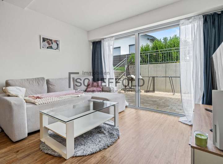 Die separat zugängliche und bereits vermietete Einliegerwohnung im Untergeschoss bietet eine optimale Ergänzung. Sie verfügt über einen offenen Wohn- und Essbereich mit Küchenzeile, ein innenliegendes Schlafzimmer, ein kompaktes Duschbad sowie einen praktischen Abstellraum, der direkt an die Küche anschließt. Die großzügige Terrasse bietet den Mietern der Einliegerwohnung einen attraktiven Außenbereich mit Privatsphäre – ein echtes Plus.