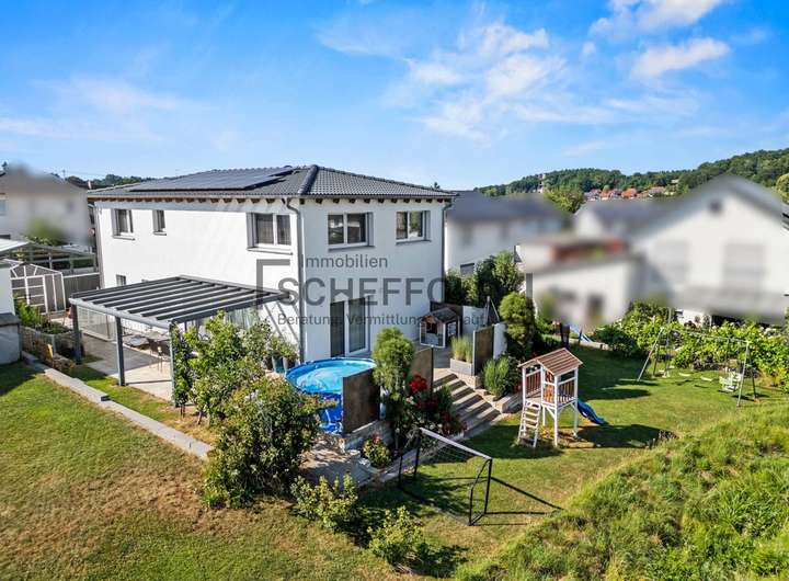 Dieses Einfamilienhaus mit Einliegerwohnung wurde im Jahr 2017 in hochwertiger, massiver Holz-Ständerbauweise errichtet. Der Keller ist in Betonbauweise ausgeführt. Die Immobilie entspricht dem energetischen Standard eines KfW-40-Hauses und wurde von Beginn an auf Effizienz, Nachhaltigkeit und modernen Wohnkomfort ausgelegt.