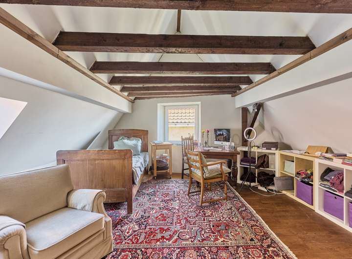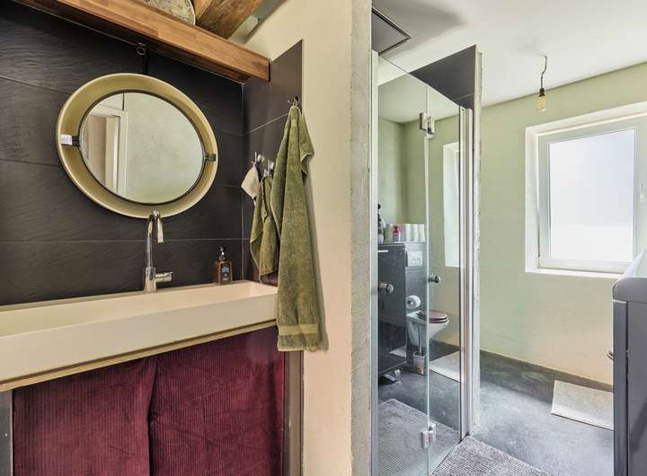 Die großzügigen Räume, die traditionellen Elemente wie Holzbalken und Naturstein, kombiniert mit moderner Technik, schaffen eine einzigartige Wohnatmosphäre. Das Haupthaus verfügt über Fussbodenheizung und loftartige Stahlelemente.