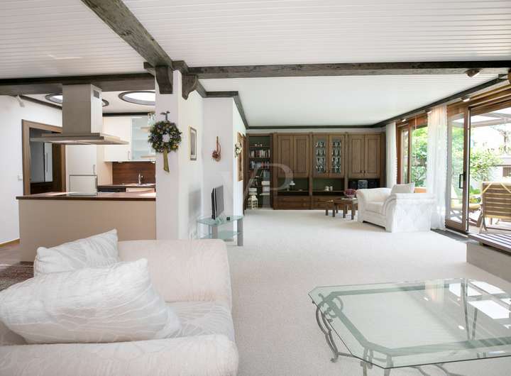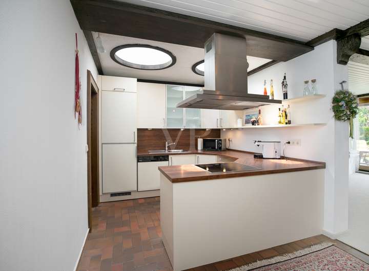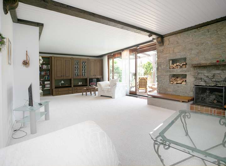 Im eigenen Haus wohnen auf einer Ebene. Das ermöglicht dieser gepflegte Bungalow in bevorzugter Wohnlage von Rüsselsheim. Die eingeschossige, vollständig unterkellerte Immobilie bietet ca. 137qm Wohnfläche. Der zentrale Wohnbereich ist großzügig gestaltet und umfasst ca. 55 m². Er verbindet harmonisch den Wohn- und Essbereich mit einer offenen Küche, die modernen Ansprüchen gerecht wird. Bodentiefe Fensterelemente und Lichtkuppeln sorgen für hervorragende Lichtverhältnisse. Ein Kamin spendet in der kühleren Jahreszeit behagliche Wärme und unterstreicht die gemütliche Atmosphäre.