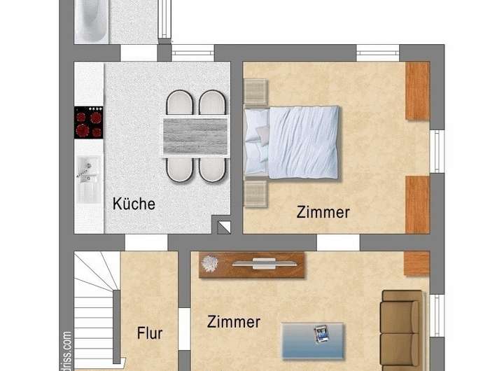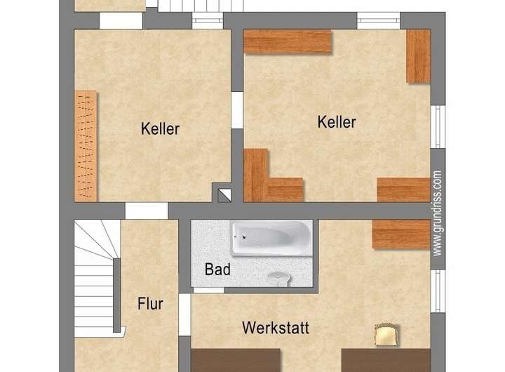 - EG: Bad mit Badewanne, Waschbecken und WC