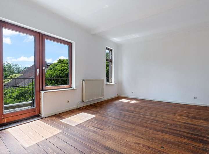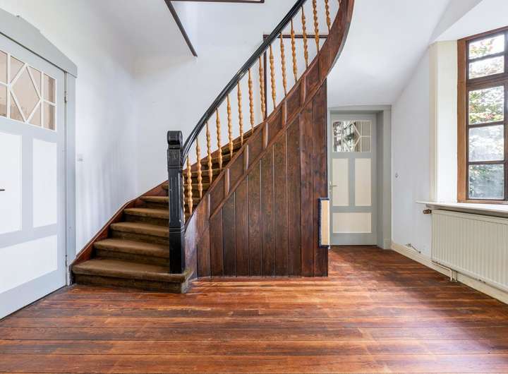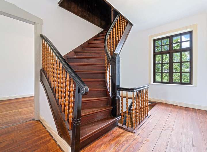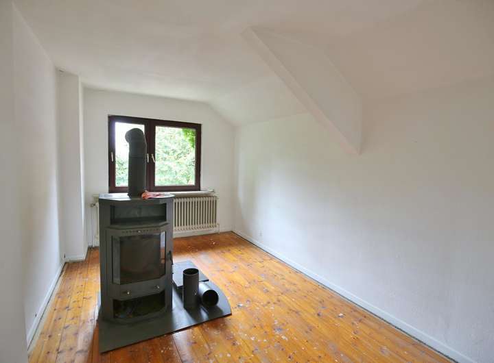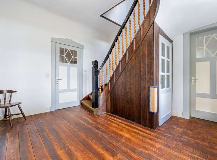 Vom Obergeschoss führt eine elegante Treppe weiter ins Dachgeschoss. Hier gibt es die Möglichkeit durch Ausbau zusätzliche Wohnfläche zu schaffen. Ein besonderes Highlight ist der originale Dielenboden, der erst kürzlich mit viel Sorgfalt aufgearbeitet wurde.