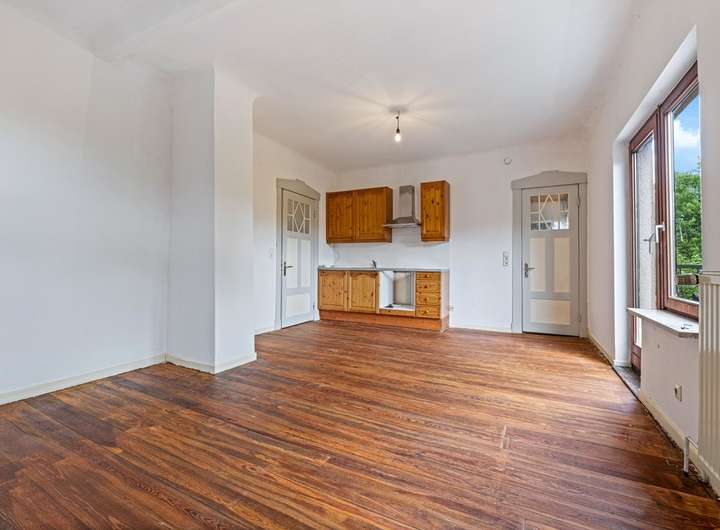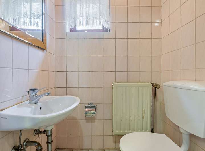 Das separate Nebengebäude aus dem Jahr 1976 ist sanierungsbedürftig, bietet jedoch enormes Potenzial: Im Erdgeschoss befinden sich eine große Garage/Scheune und Räume für handwerkliche Zwecke, während das Obergeschoss zwei Wohnungen umfasst. Da für dieses Gebäude bereits Klarheit besteht, dass ein Abriss möglich ist und ein Neubau mit bis zu fünf Wohneinheiten realisiert werden kann, stellt dies eine äußerst interessante Option für Investoren oder Bauherren dar.