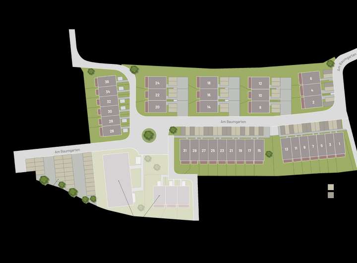 Jedes Haus verfügt über einen eigenen idyllischen Garten, der Ihnen eine grüne Oase der Erholung bietet. Zwei private Stellplätze, welche teilweise mit Carports ausgestattet sind, sorgen für sichere und bequeme Parkmöglichkeiten. Das Neubauquartier liegt zentral in Roth und bietet die perfekte Balance zwischen urbanem Leben und Naturidylle. Umgeben von viel Grün haben Sie gleichzeitig alle wichtigen Annehmlichkeiten wie Einkaufsmöglichkeiten, Schulen und medizinische Versorgung in unmittelbarer Nähe.