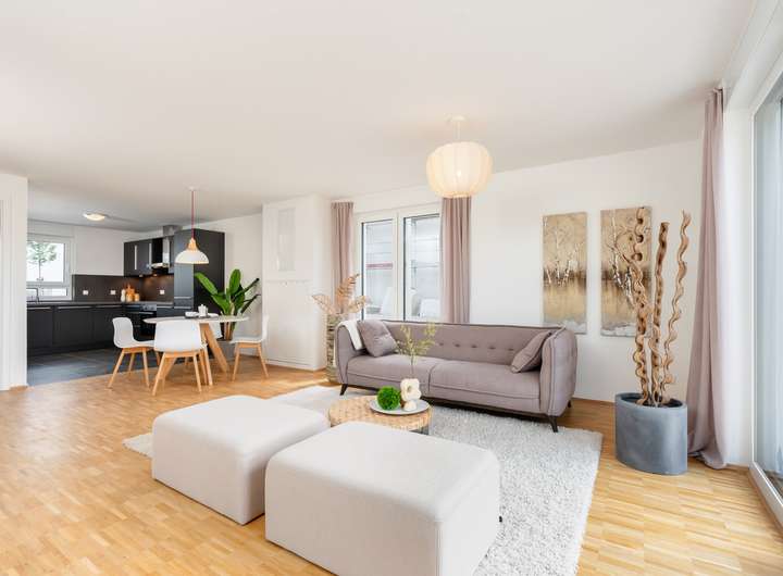 • Optimale Raumnutzung mit großen Fensterelementen für ein helles und einladendes Wohnambiente.
