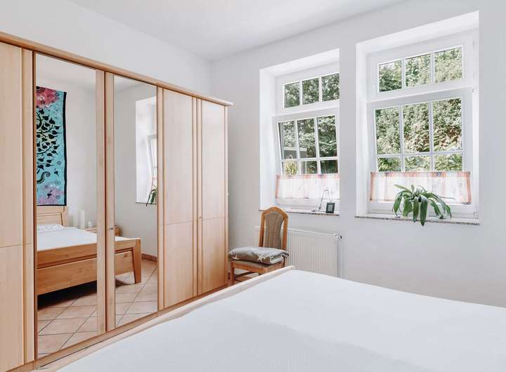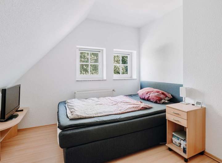 Das erste Haus, ein charmantes Fachwerkgebäude, wurde im Jahr 1999 umfassend kernsaniert. Es beherbergt zwei separate Wohneinheiten mit einer Gesamtwohnfläche von ca. 194 m², die aktuell vermietet sind. Die historische Bauweise verleiht dem Haus einen unverwechselbaren Charakter, während die Modernisierung für heutigen Wohnkomfort sorgt. Es eignet sich ideal für Familienangehörige, Gäste oder als hochwertige Kapitalanlage.