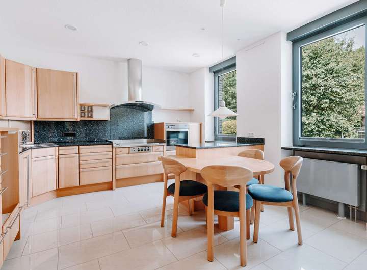 • Einbauküche aus Vollholz mit erstklassigen Miele-Geräten und