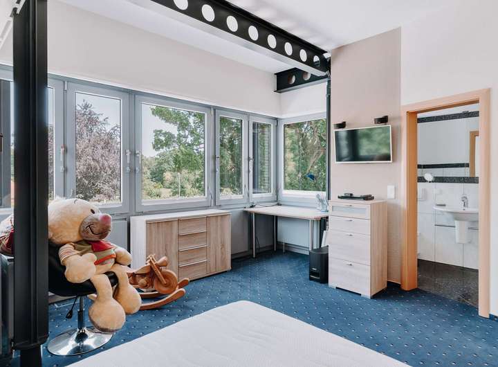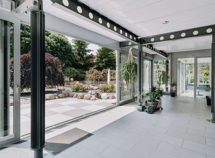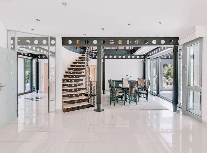 • Haupthaus beeindruckt mit offener Stahlkonstruktion, großzügigen
