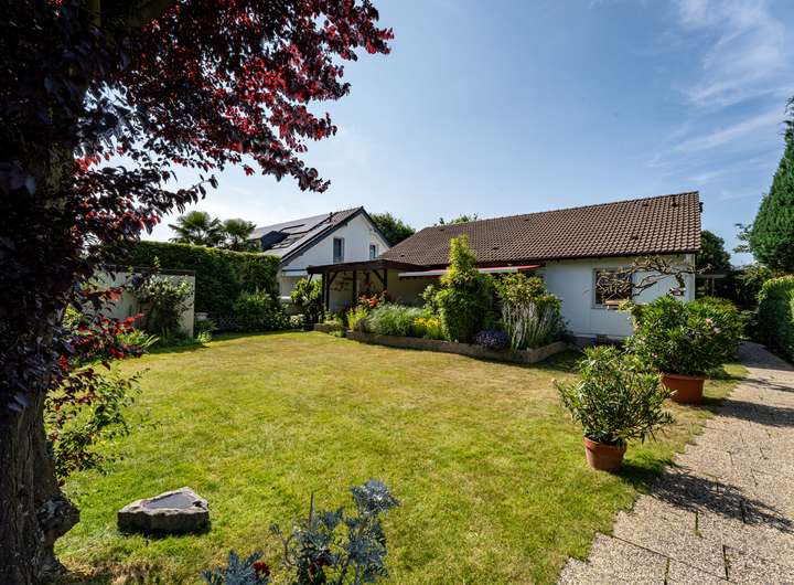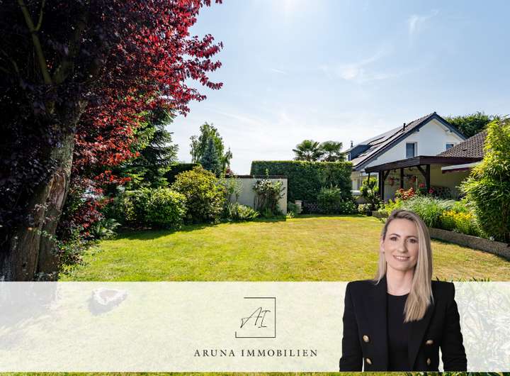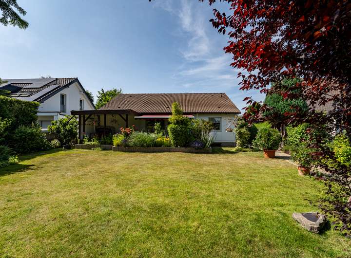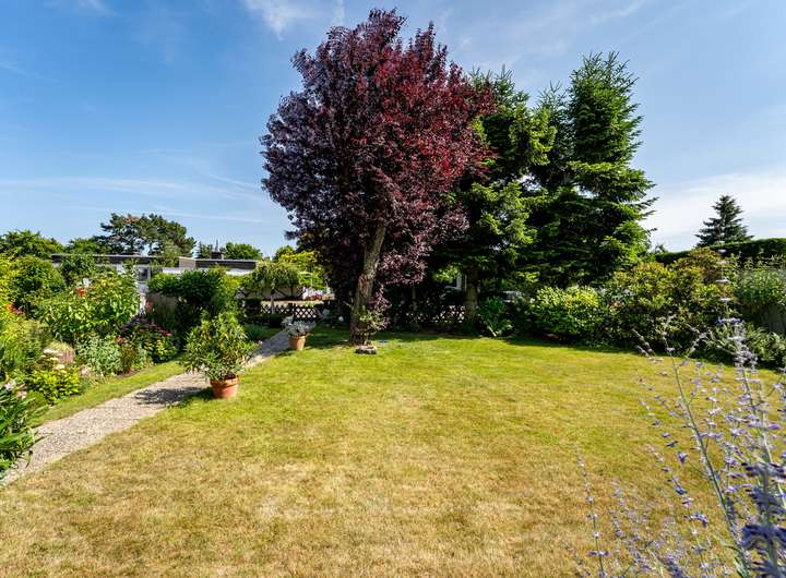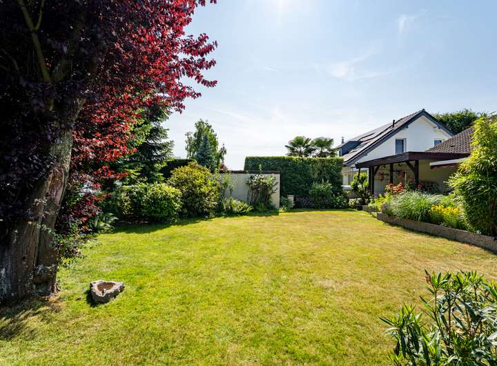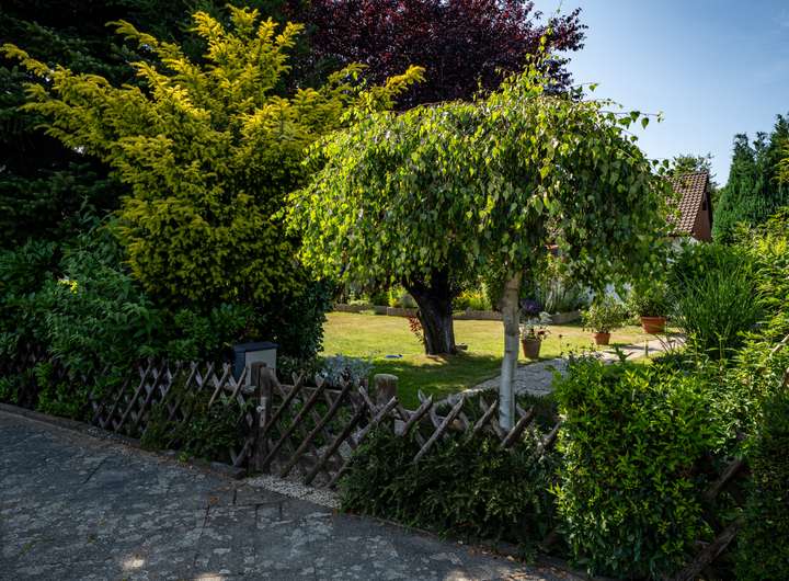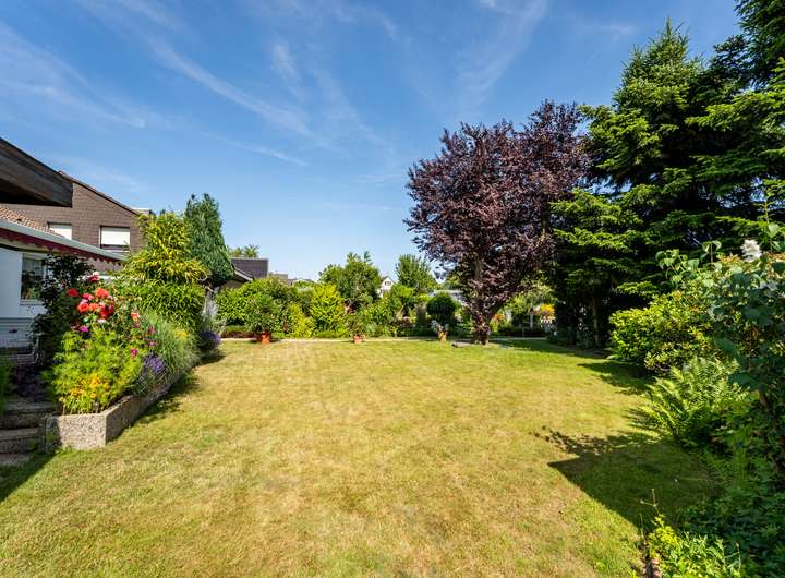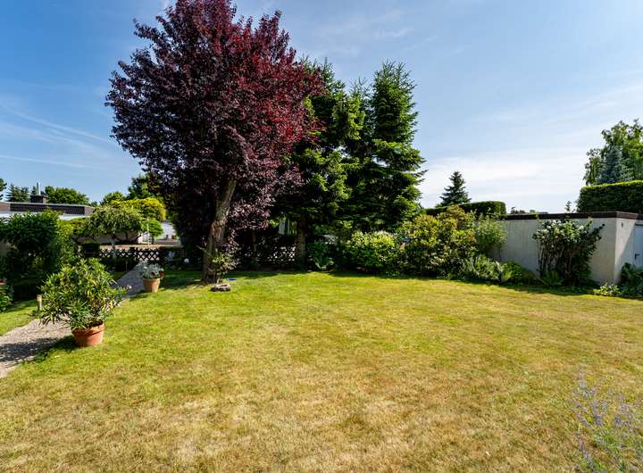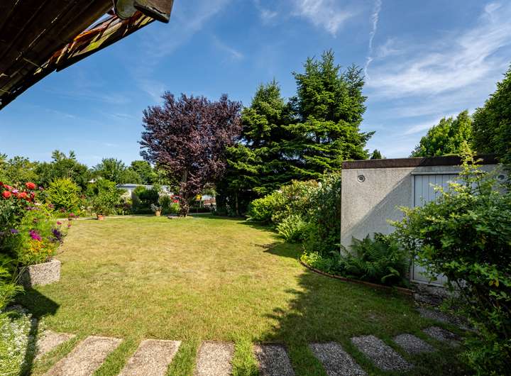 Der vordere Gartenbereich des Grundstücks ist großzügig angelegt, bietet eine ideale Südausrichtung und somit beste Voraussetzungen für sonnige Stunden im Grünen. Der rückwärtige Gartenbereich ist hingegen kleiner geschnitten und nach Norden ausgerichtet. Hier befindet sich ein Pool.