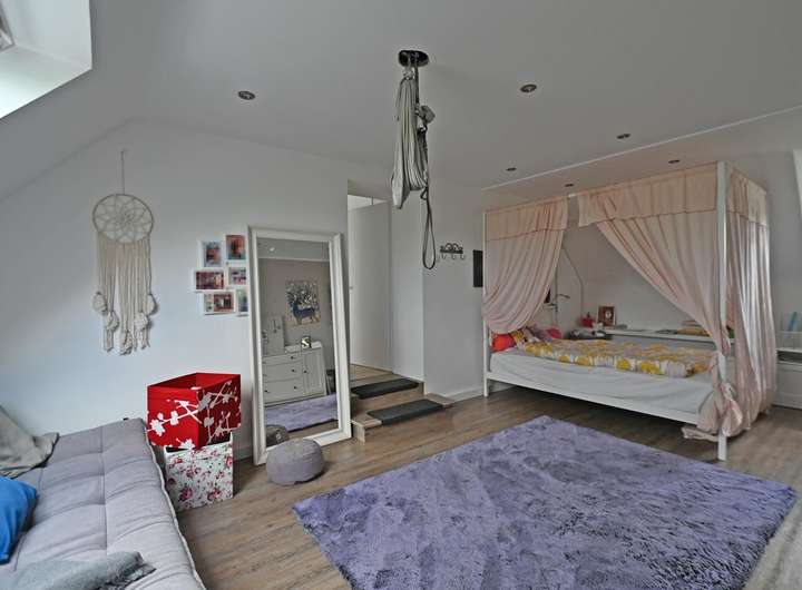 Ein herrliches Zuhause für eine junge Familie, das großzügig konzipiert, wunderbar hell, sonnig und mit viel Liebe zu den Details gestaltet wurde. Schon vor dem Haus stehend fühlt sich alles nach "Zuhause" an und dieses Gefühl, hier als Familie gut aufgehoben zu sein, setzt sich zu 100% fort, wenn man das Haus betritt und seine einzelnen Räume anschaut. Auch die Grundstückssituation ist familienperfekt - gut geschützt durch eine hohe Hecke und zwei Eingangstore. Aber auch außerhalb des eigenen Grundstücks ist die Lage absolut freundlich und behütet! In den kleinen Straßen des Quartiers kann man noch - wie früher - auf der Straße spielen, es gibt viele Kinder und eine sehr freundliche und angenehme Nachbarschaft.
