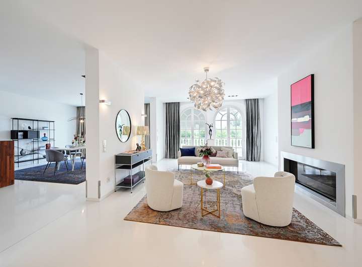 +Großzügiger Wohn-Essbereich mit zwei Kaminen