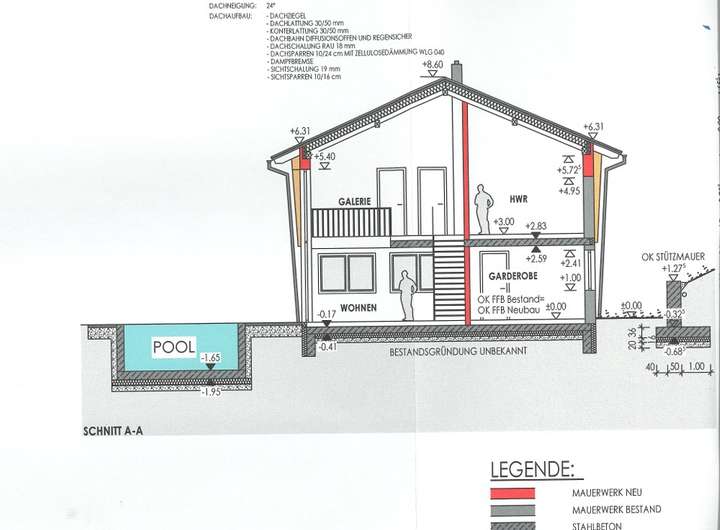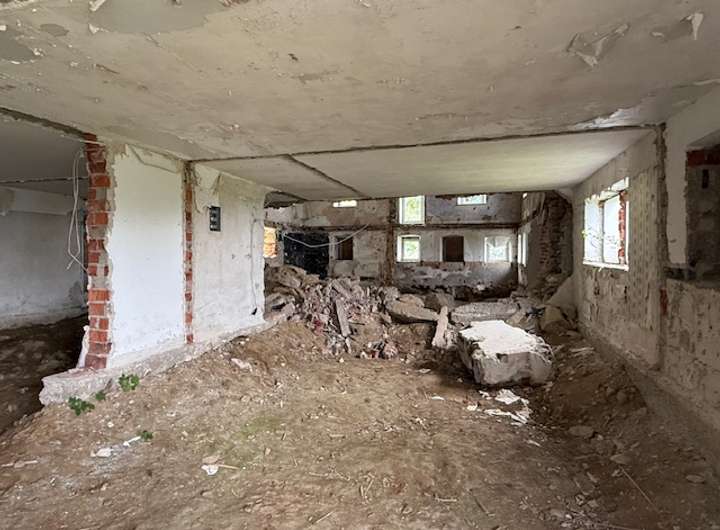 Früher wurde das Objekt als Pension genutzt. Später begann der Vorbesitzer mit Umbaumaßnahmen, in dem er den Gebäudebestand weitgehend entkernt hat. Den Umfang der Maßnahmen erkennt man auf den beigefügten Fotos.