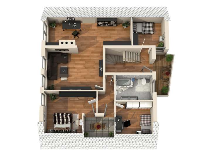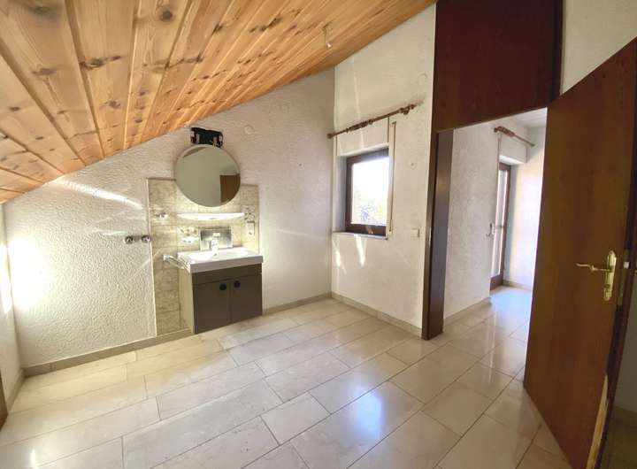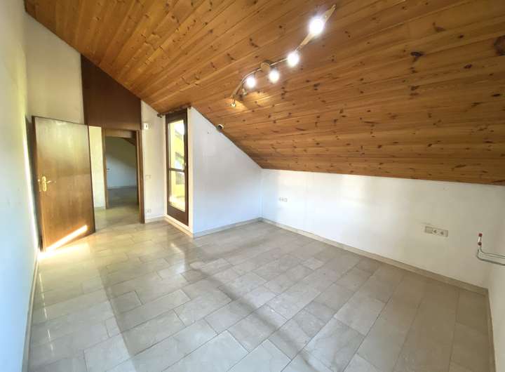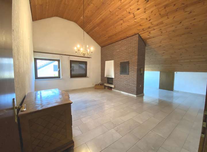 Das Dachgeschoss beherbergt vier individuell nutzbare Zimmer mit beeindruckenden Deckenhöhen. Das größte Zimmer punktet mit einem eigenen Kamin und bietet ein behagliches Ambiente. Zusätzlich stehen Ihnen ein Balkon und eine Loggia zur Verfügung – für entspannte Ausblicke und Rückzugsorte im Freien. Ein geräumiges Badezimmer rundet diese Ebene ab.