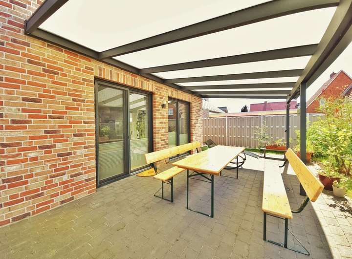 Auch technisch überzeugt das Haus: Die Warmwasseraufbereitung erfolgt energieeffizient über Solarthermie, Glasfaseranschluss ist bereits vorhanden und der Fernsehempfang erfolgt bequem über eine Satellitenschüssel und SmartHome ist ebenfalls vorhanden.