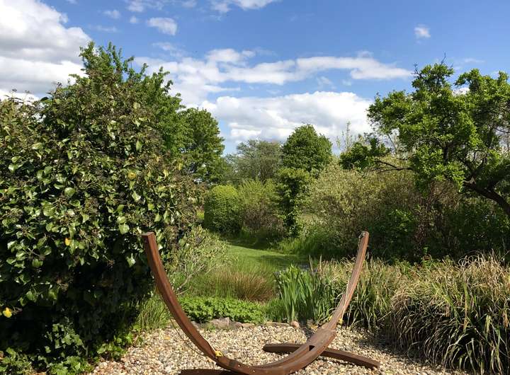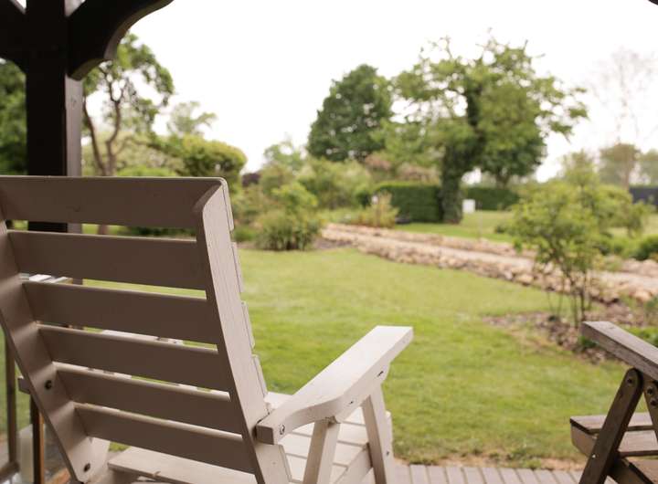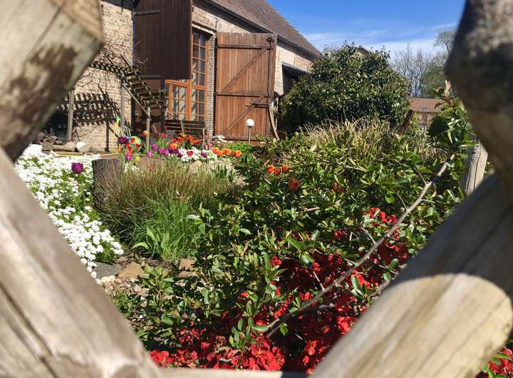 Das Grundstück überzeugt mit seiner Großzügigkeit und dennoch pflegeleichten Anlage. Dank Rasenmähroboter, Brunnenwasser und Beregnungsanlage lässt sich die Außenanlage mühelos in