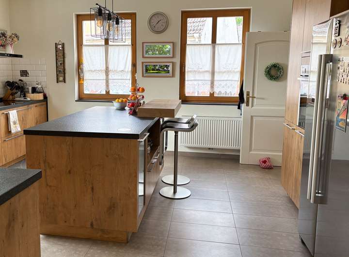 Das Haupthaus, ursprünglich um 1895 erbaut, wurde 1996 erweitert und 2018 mit viel Liebe zum Detail umfassend modernisiert. Auf ca. 250 m2 Wohnfläche erwarten Sie 5 großzügige Zimmer