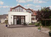 Die angrenzende Remise bietet auf 50 m2 eine eigenständige Wohneinheit mit 2 Zimmern, Küche und Bad – ideal für Gäste, Au-pair oder zur Vermietung. Im Nebengelass befinden sich ein